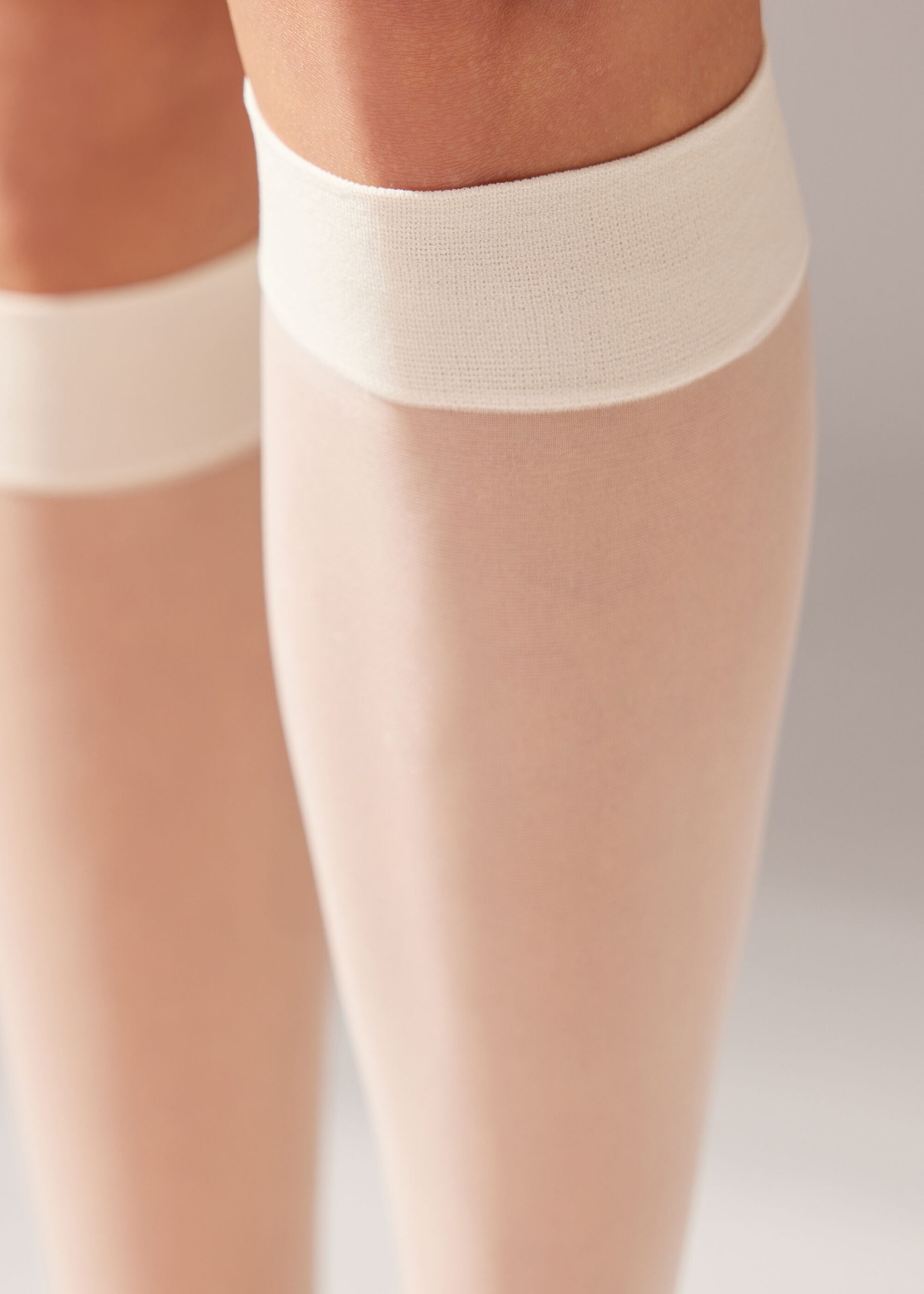 Women’s 20 denier knee-highs with a comfort cuff and sandal toe.