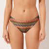 Brazilian cut bikini bottom with side ties. The style features a black and white toned pattern embellished with a coated effect. Fully lined with invisible seams.