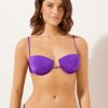 Brazilian bikini bottoms with adjustable side panels, featuring a minimal fit that exalts the silhouette with a touch of sensuality and refinement. The slightly rounded waist at the front allows for both a regular and more high-cut fit, depending on one’s physique. The bright silk-effect fabric embellished by elegant golden details radiates a sophisticated sensation of discrete luxury. Fully lined with invisible seams.