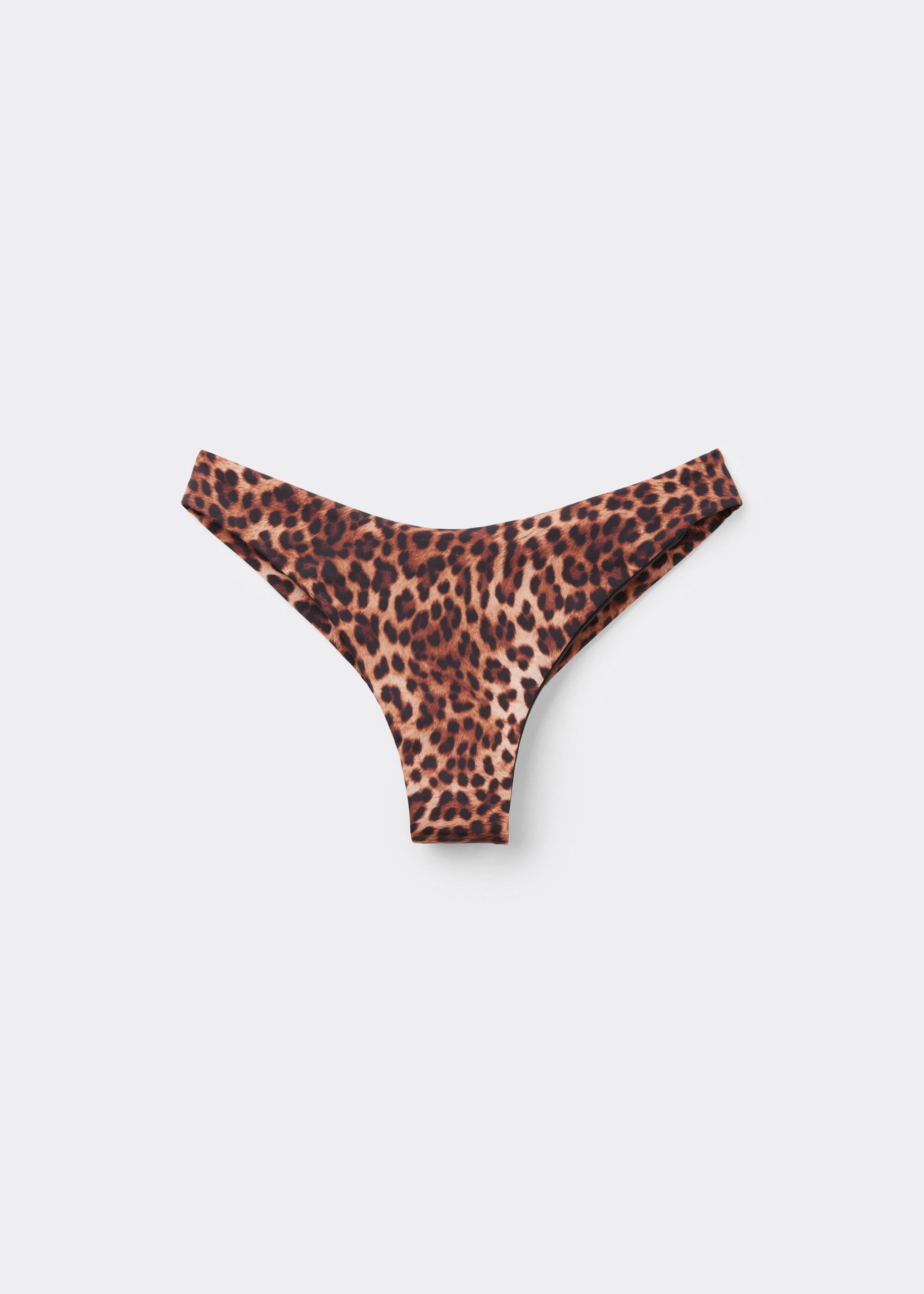 Fully lined Brazilian bikini bottoms. The style features an elegant animal pattern. The slightly rounded waist at the front allows for wear with classic coverage or a higher leg, depending on your body shape.