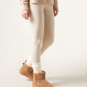 Women’s ribbed cashmere blend modal leggings featuring a comfortable high waist with soft elastic. The fabric is opaque, soft, and breathable, with a brushed interior for a warm and comfortable effect, ideal on the coldest days.