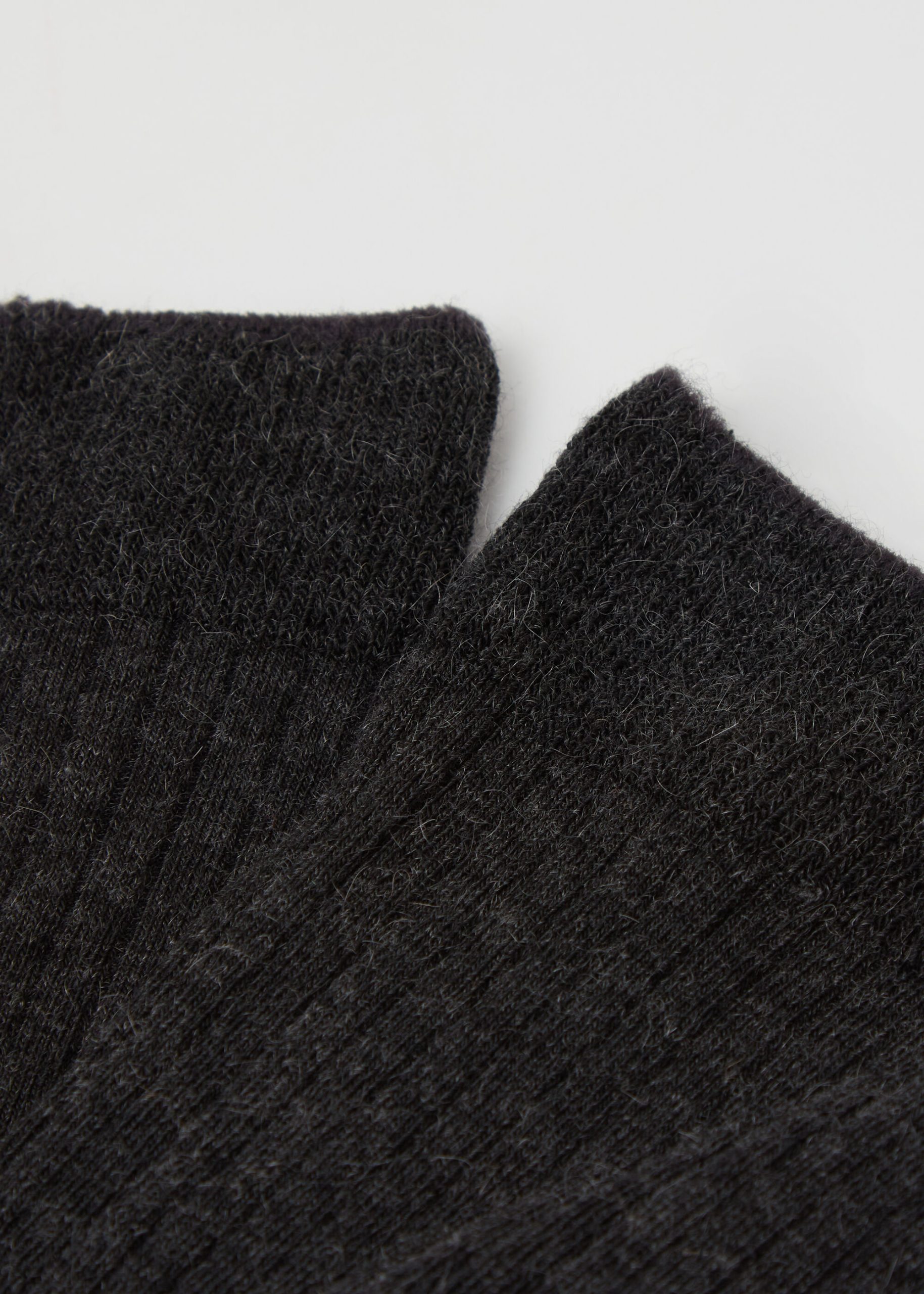 Women’s cashmere blend short socks with a ribbed construction, warm and comfortable.