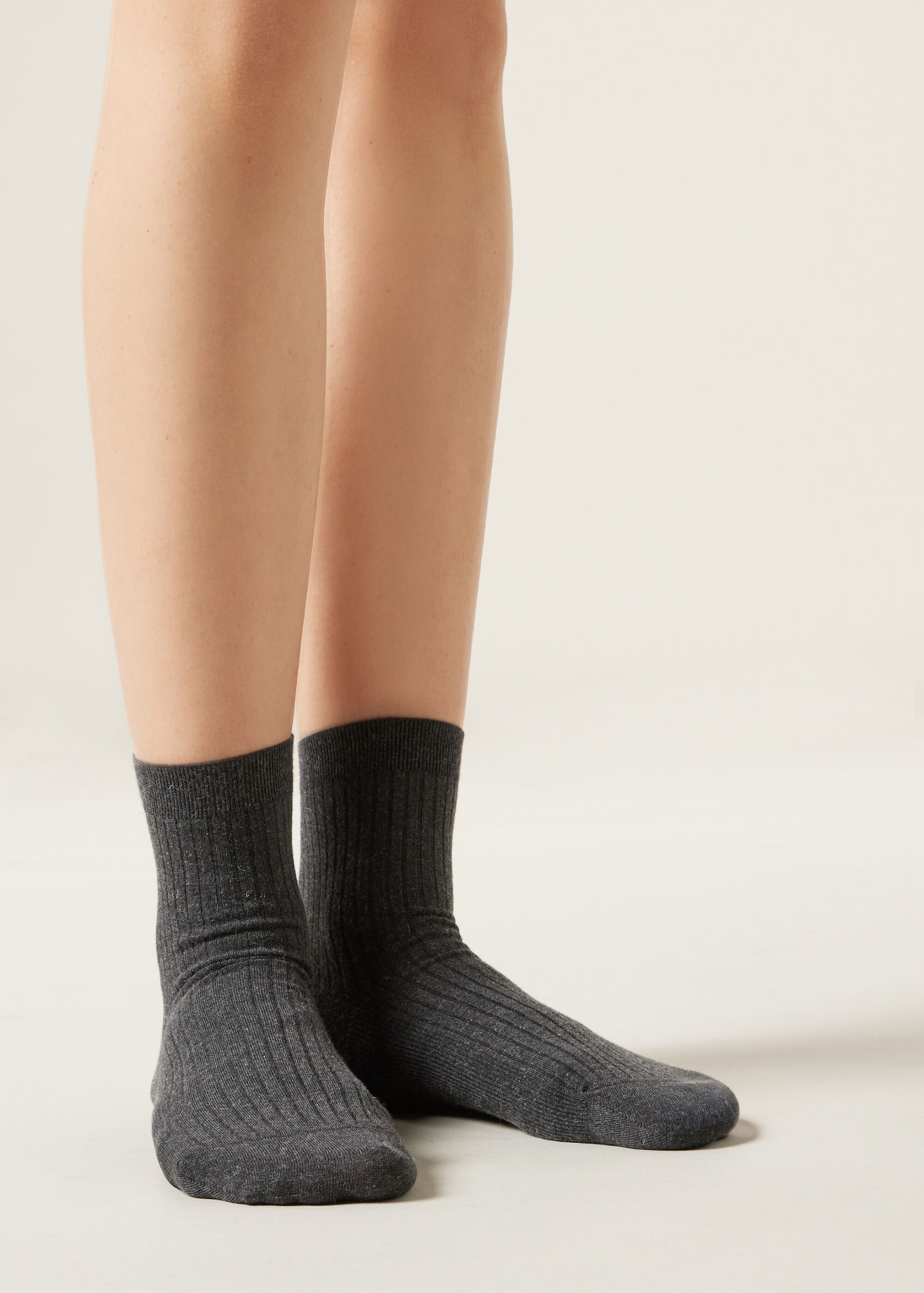 Women’s cashmere blend short socks with a ribbed construction, warm and comfortable.