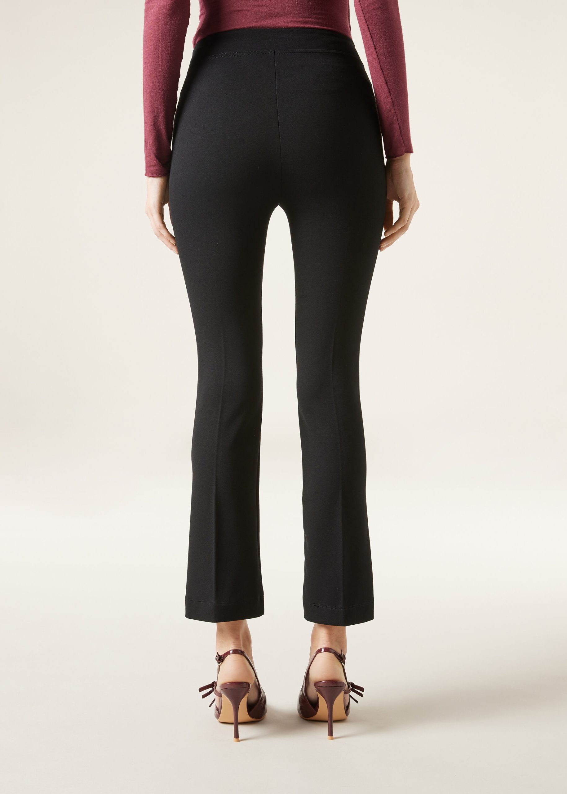 Women’s cropped flared stretch leggings, with elasticated belt.