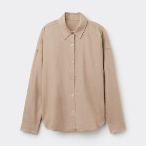 Cropped button-down shirt in linen and viscose, perfect for those who love natural fibers, with shirt collar and long sleeves. With a comfortable fit and a fluid design, it is perfect for pairing with the shorts or pants from the same series.