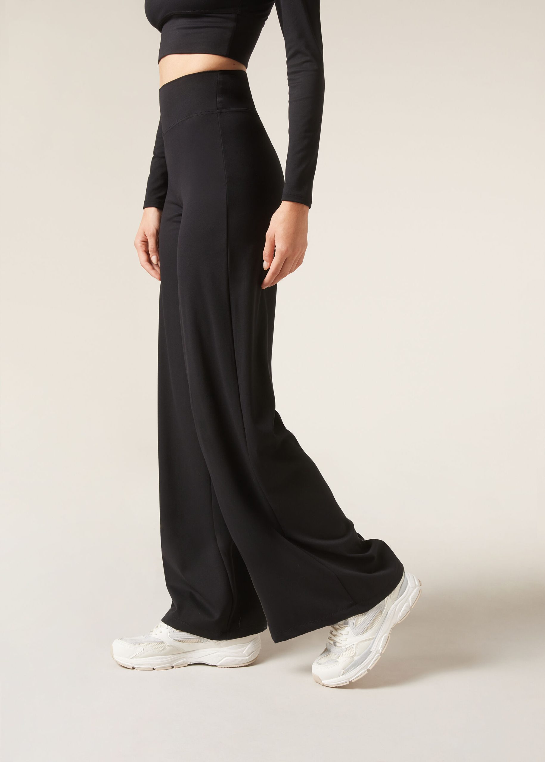 Palazzo leggings made of high-stretch, high quality fabric that ensures an ultra soft fit. Especially comfortable high waist without elastic. These workout leggings guarantee total coverage and optimal durability, keeping you at ease always, even on the longest days or while traveling. Pairs with coordinating top MODT0015.