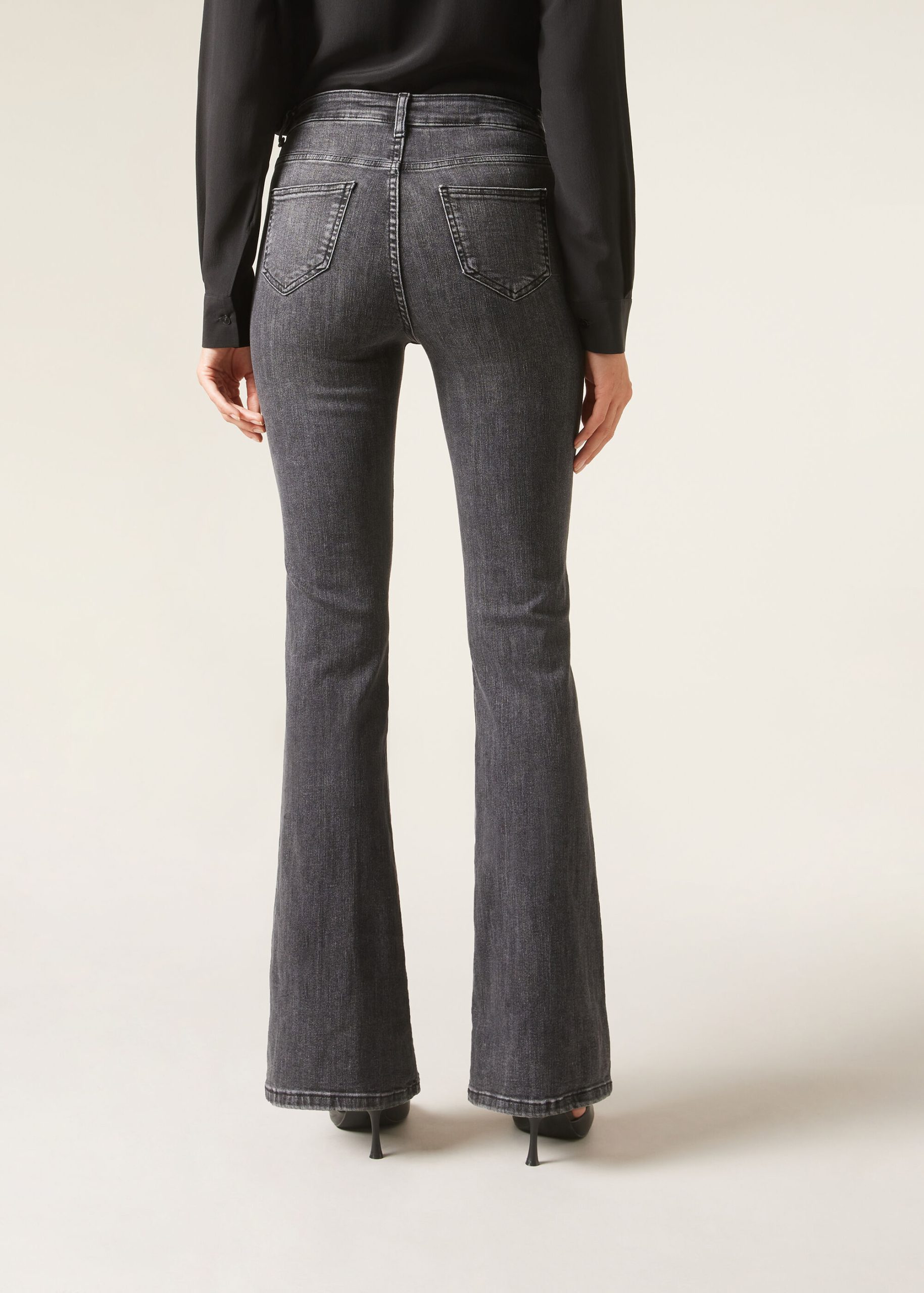 Women’s five pocket flared jeans with belt loops, zip and button closure, and rivets with the Clz logo. Made of ultra stretch denim fabric, these flared stretch jeans offer exceptional comfort and a perfect fit, ideal for those seeking style and comfort in a single piece.