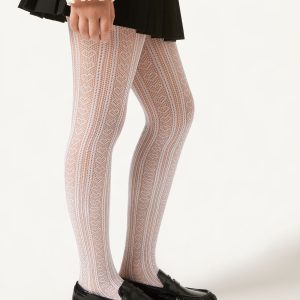 Girls’ fishnet tights featuring a geometric motif with hearts.