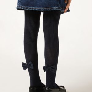 Girls’ Ribbed Cotton Tights with Bow
