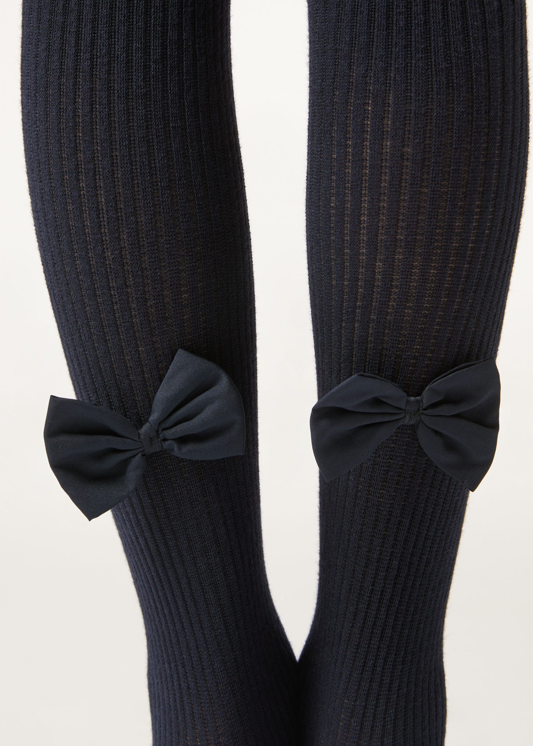 Girls’ soft cotton tights featuring a ribbed construction and embellished with an elegant tone on tone bow.