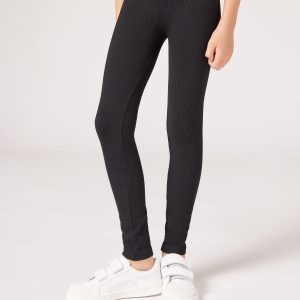 Girls’ fine ribbed seamless leggings in opaque fabric that is especially soft and comfortable thanks to it being elasticized. Comfortable waistband. Leggings suited for sports activities.
