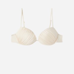 Graduated Padded Push Up Swimsuit Top Shiny Satin