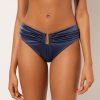 Push-up underwire bikini top with especially soft, graduated padded cups. The style features a bright fabric with a silky effect with ruffles. Adjustable straps and back tie closure.