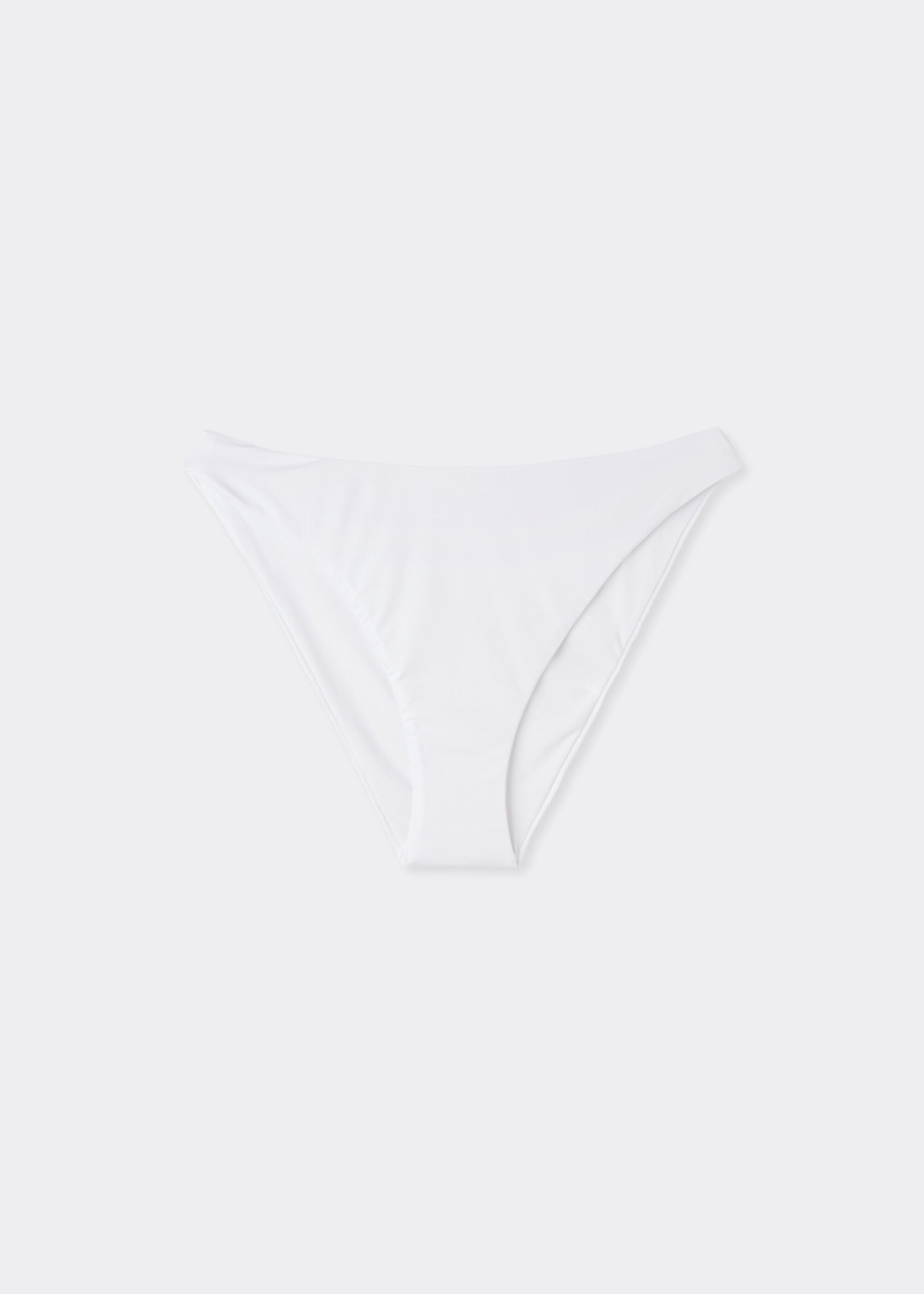 Engineered with a high leg cut, our bikini bottoms are designed to enhance your natural curves and flatter every angle. Fully lined for durability and coverage, these seamless high-waisted bikini bottoms feature invisible seams that create a smooth, seamless silhouette, enhancing the natural contours of the body. The slightly rounded front allows the option of wearing the high-leg bikini bottoms as a standard fit or styling the sides higher on the hips to accentuate the legs and elongate the figure. The high-rise design sits comfortably on the waist, providing light support while highlighting the natural curve of the waistline. Crafted from ultra-soft, quick-drying fabric, these seamlessly high-waisted bikini bottoms feel lightweight and breathable, ensuring maximum comfort during long beach days or laps in the water. Thoughtfully designed for superior fit and performance, these high-leg bikini bottoms are the ultimate choice for women seeking chic, functional swimwear that keeps up with their active, stylish lifestyle.