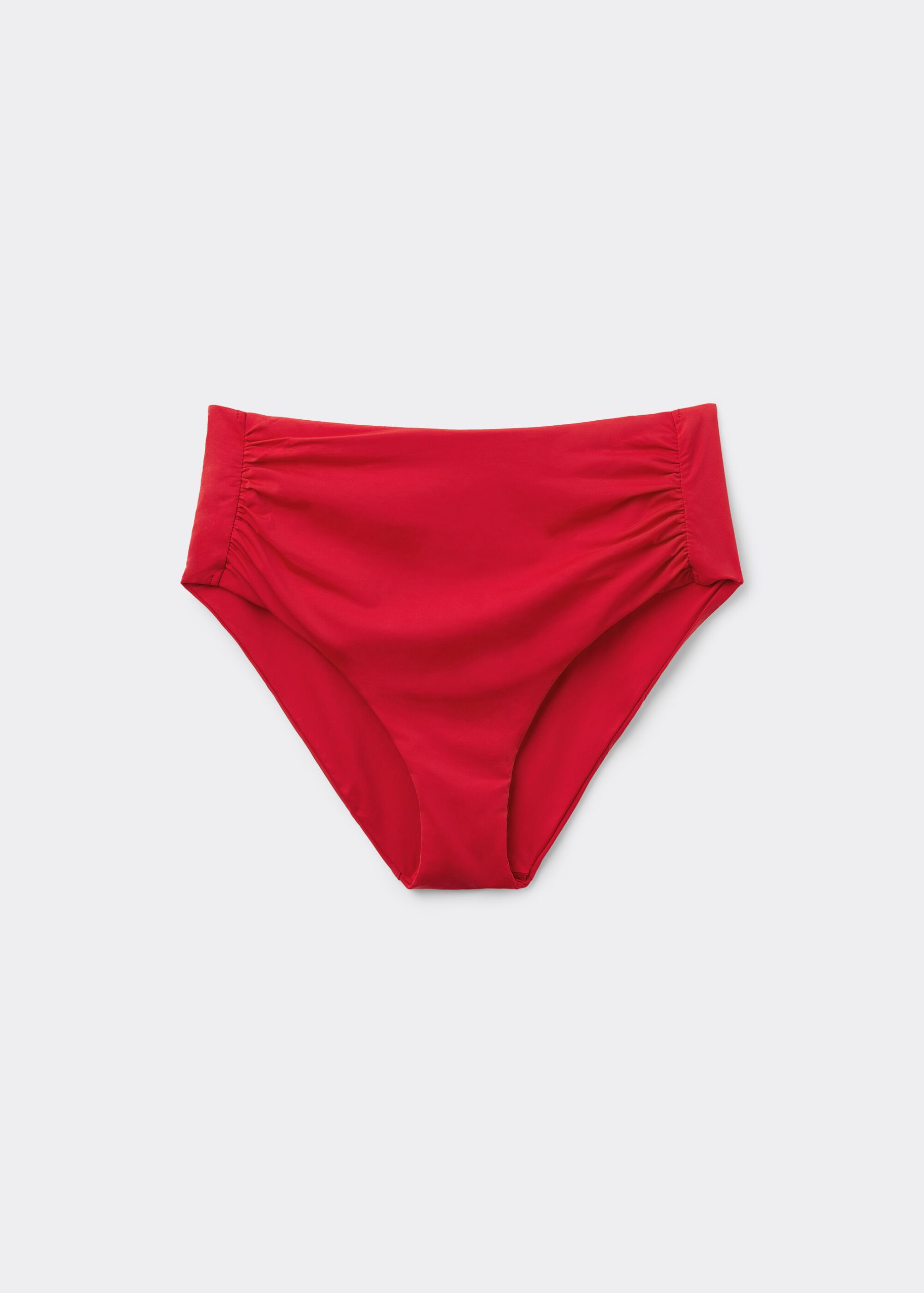 Bikini bottom with side ruching and a slightly high waist with a shaping effect on the abdomen, ensured by a special tulle at the front. The extremely soft fabric makes it pleasant to wear, offering a light and comfortable feel on the skin. Fully lined with invisible seams.
