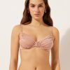 Bikini bottom with side ruching and a slightly high waist with a shaping effect on the abdomen, ensured by a special tulle at the front. The extremely soft fabric makes it pleasant to wear, offering a light and comfortable feel on the skin. Fully lined with invisible seams.