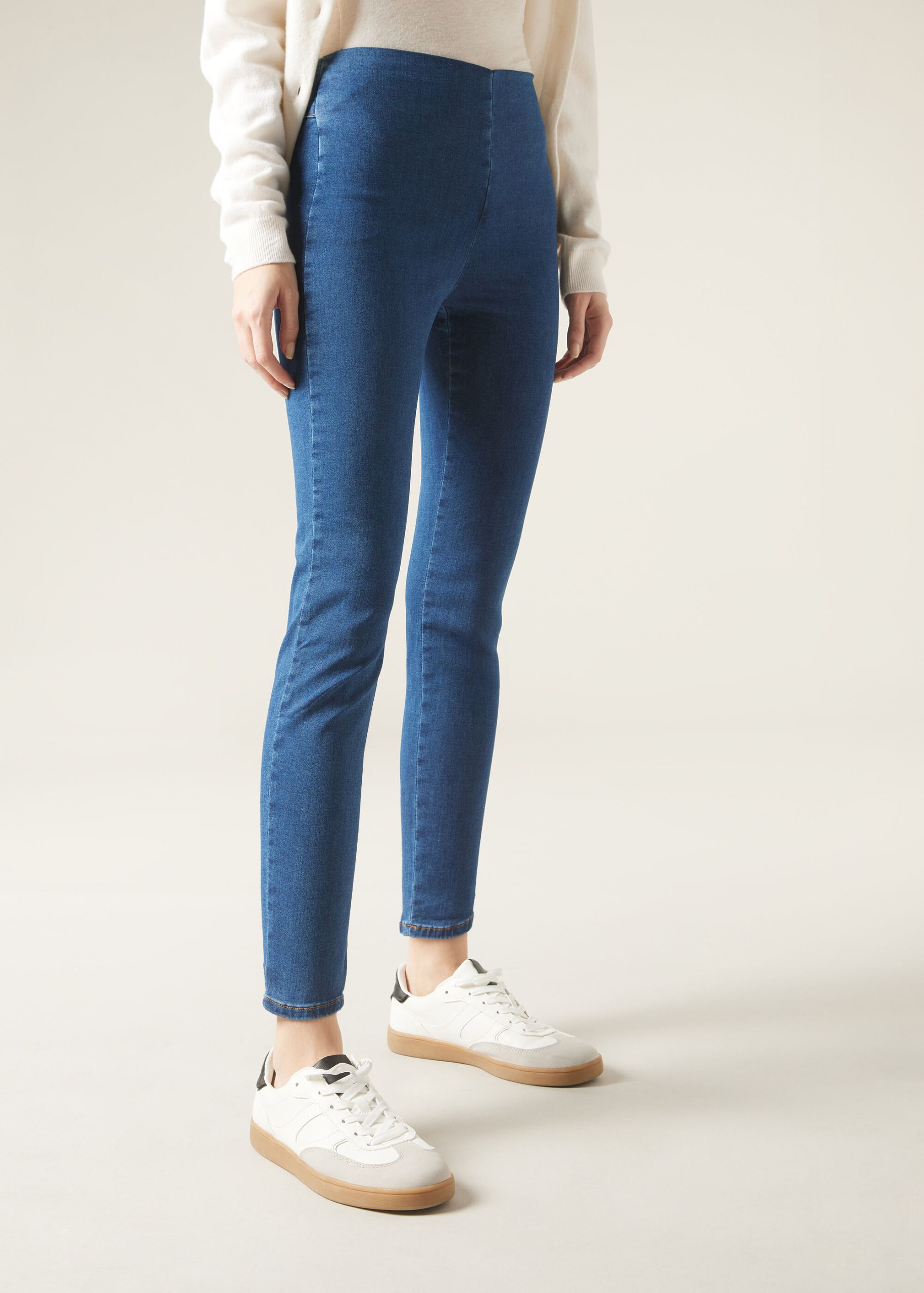 Women’s high waist skinny denim leggings. Especially soft and comfortable stretch denim fabric.