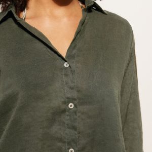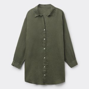 Button up shirtdress in linen for those who love natural fibers, with lapel collar and long sleeves. Above-the-knee length.