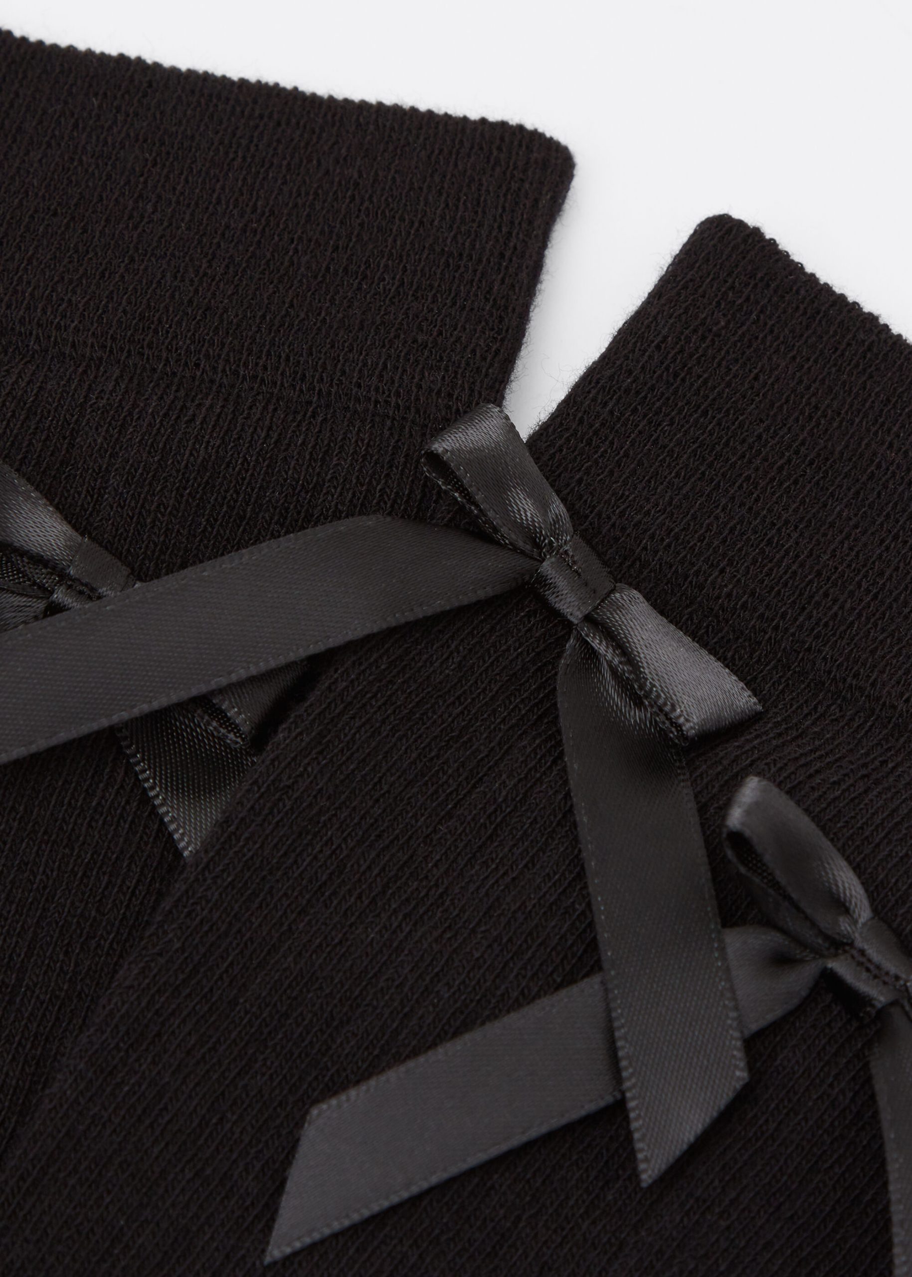 Women’s long socks in ribbed cotton with elegant bow appliqués. Refined and feminine, perfect for completing chic looks with a distinctive touch.