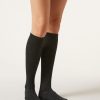 Women’s smooth long socks with a warm and soft cashmere interior.