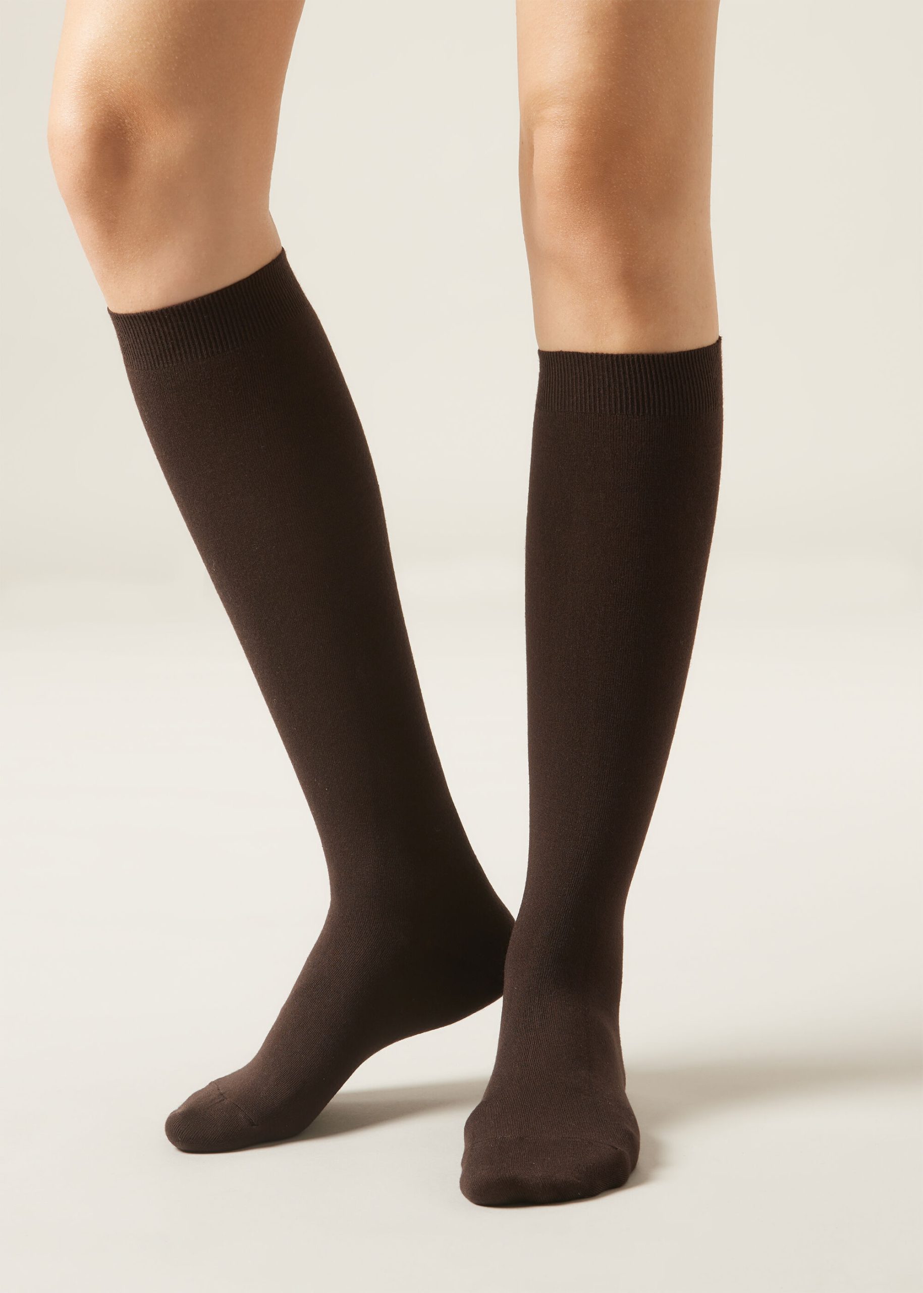 Women’s smooth long socks with a warm and soft cashmere interior.