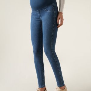 Maternity jeans in stretch denim with soft elastic cotton band, designed to accompany the months of the abdomen’s gradual development during pregnancy and ensure an optimal fit on the belly. False front pockets and actual back pockets. Ideal from the 4th/5th month.