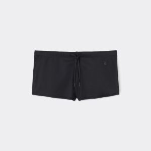 Men’s swimming shorts in microfiber with slightly high sides and regular back coverage. Covered elastic waistband and adjustable external drawstring. Interior front lining.