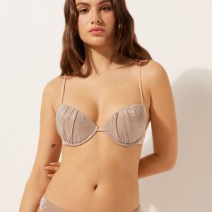 Padded Push-Up Swimsuit Top Golden Glitter