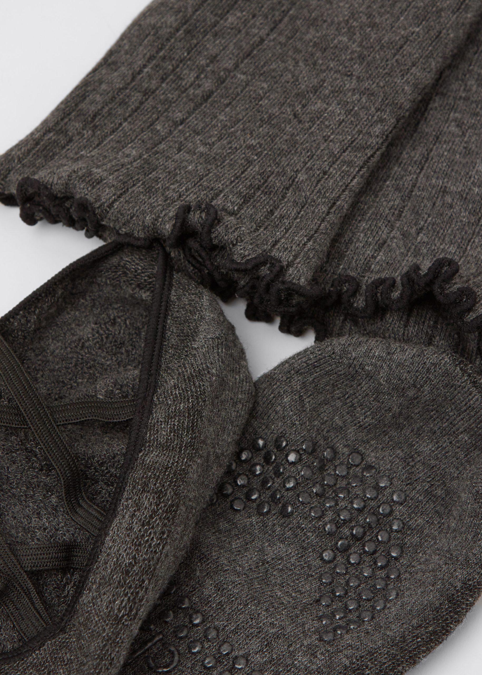 Women’s non-slip Pilates socks in ribbed cotton, with lined leg and ballerina-style foot. They feature a crossover lace-up closure on the instep and a non-slip insole for a secure fit during activity.