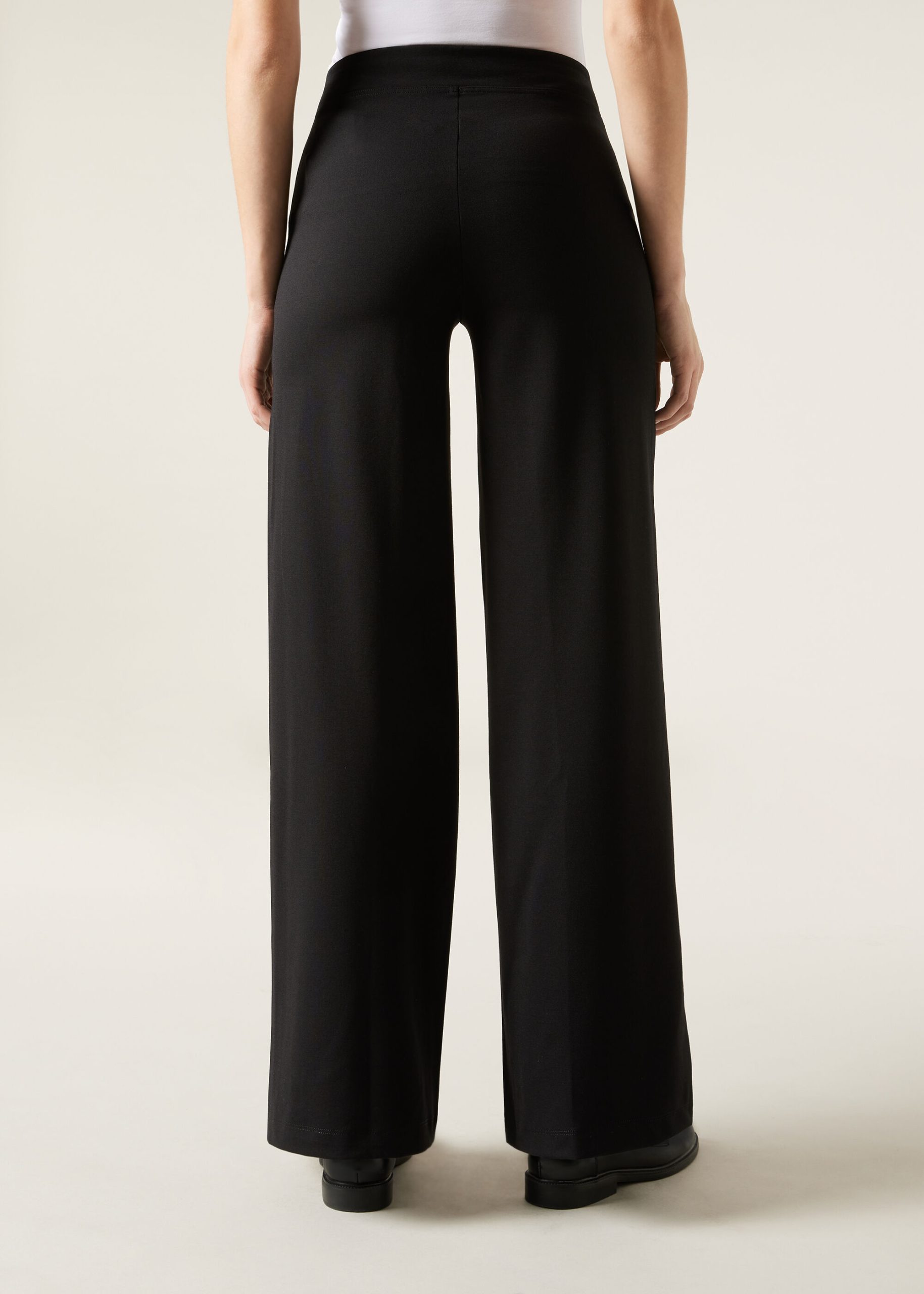 Women’s flared leggings made of punto Milano. Comfortable soft elastic waistband.