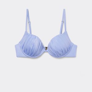 Push-up bikini top with lightly padded cups and underwire to guarantee support and provide volume. The style features a bright fabric with a silky effect. Fixed Shoulder Straps. Rear closure with double adjustment hook.