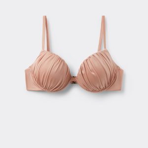 Push-up bikini top with lightly padded cups and underwire to guarantee support and provide volume. The style features a bright fabric with a silky effect. Fixed Shoulder Straps. Rear closure with double adjustment hook.