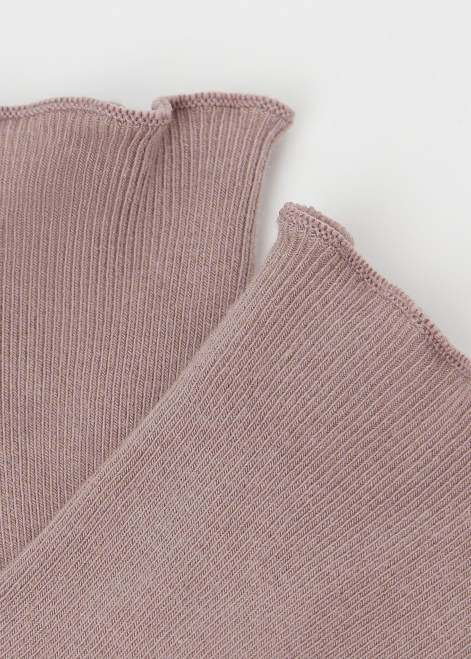 Women’s short ribbed cotton socks with romantic trim detailing.
