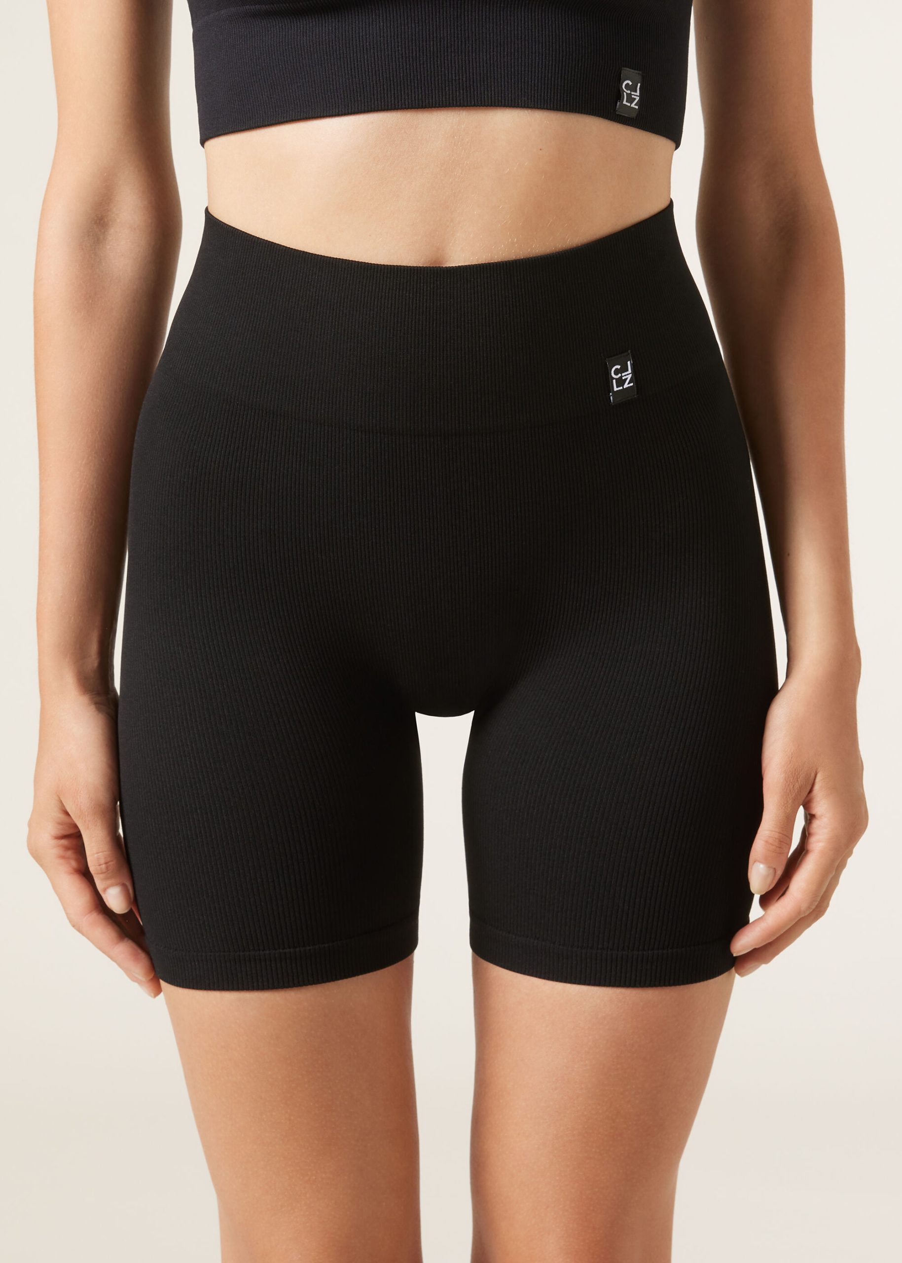 Seamless thin ribbed bike shorts, ideal for exercise. Ultra-comfortable high waistband. Super opaque.