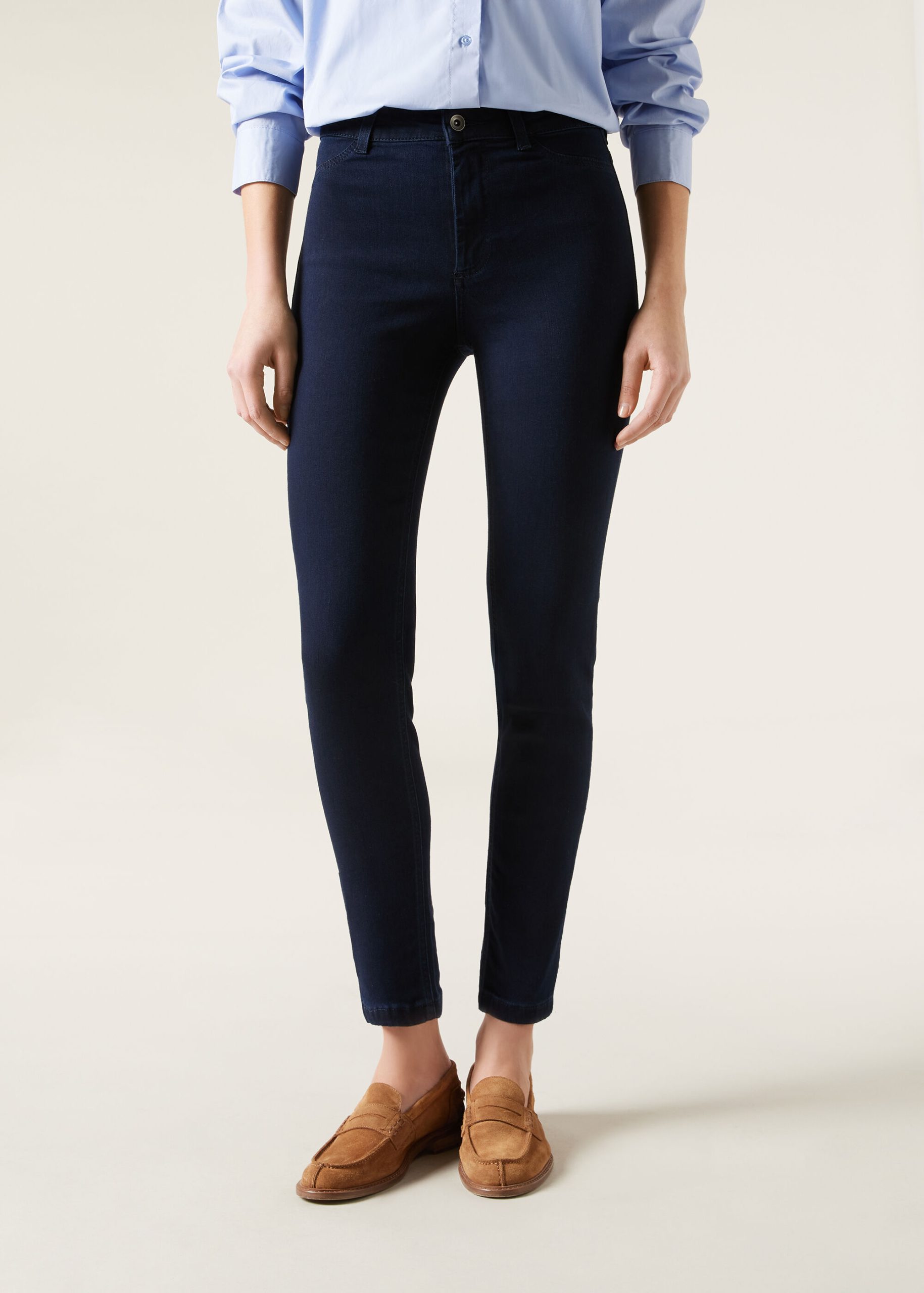 Women’s skinny jeans with zip and button and actual front and back pockets. Made of denim fabric that is especially warm and comfortable thanks to the soft brushed interior.