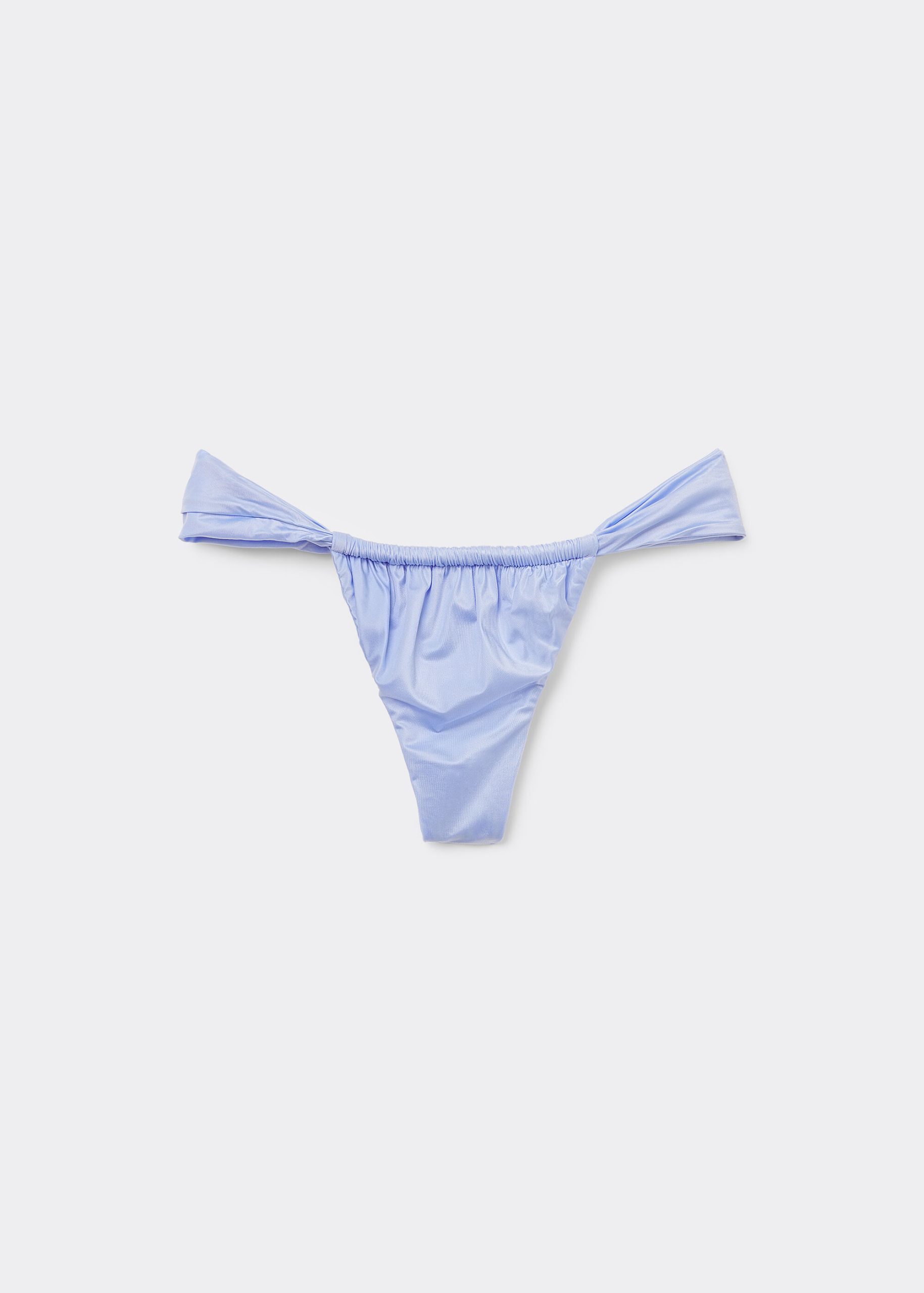 Brazilian bikini bottom with soft sides, featuring a bright fabric with a silky effect with ruffles. Fully lined with invisible seams.