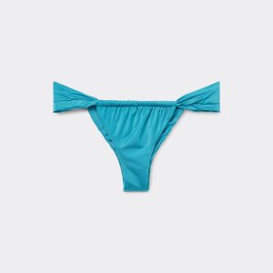 Brazilian bikini bottom with soft sides, featuring a bright fabric with a silky effect with ruffles. Fully lined with invisible seams.