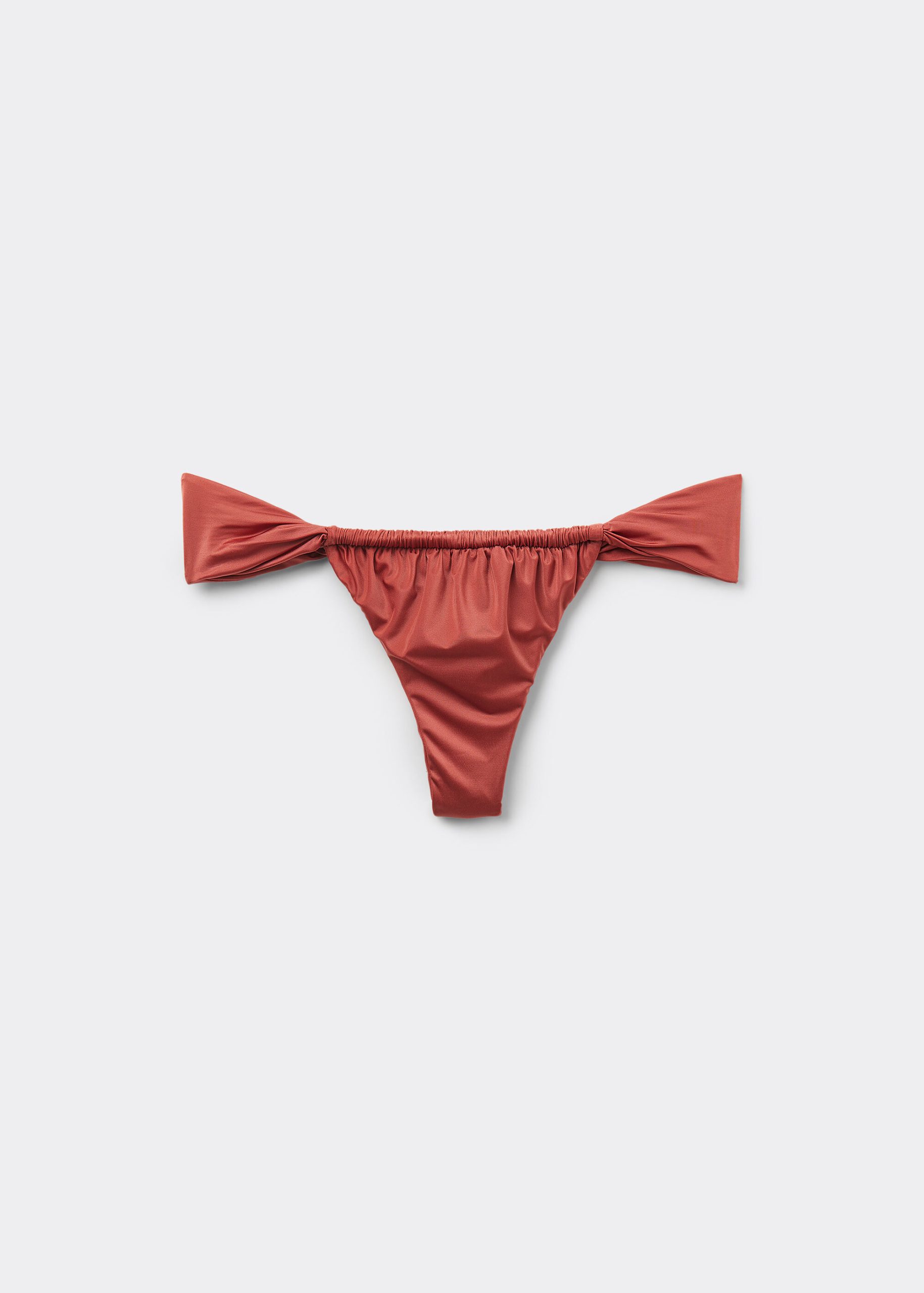 Brazilian bikini bottom with soft sides, featuring a bright fabric with a silky effect with ruffles. Fully lined with invisible seams.