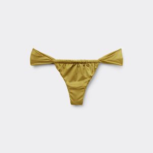 Brazilian bikini bottom with soft sides, featuring a bright fabric with a silky effect with ruffles. Fully lined with invisible seams.