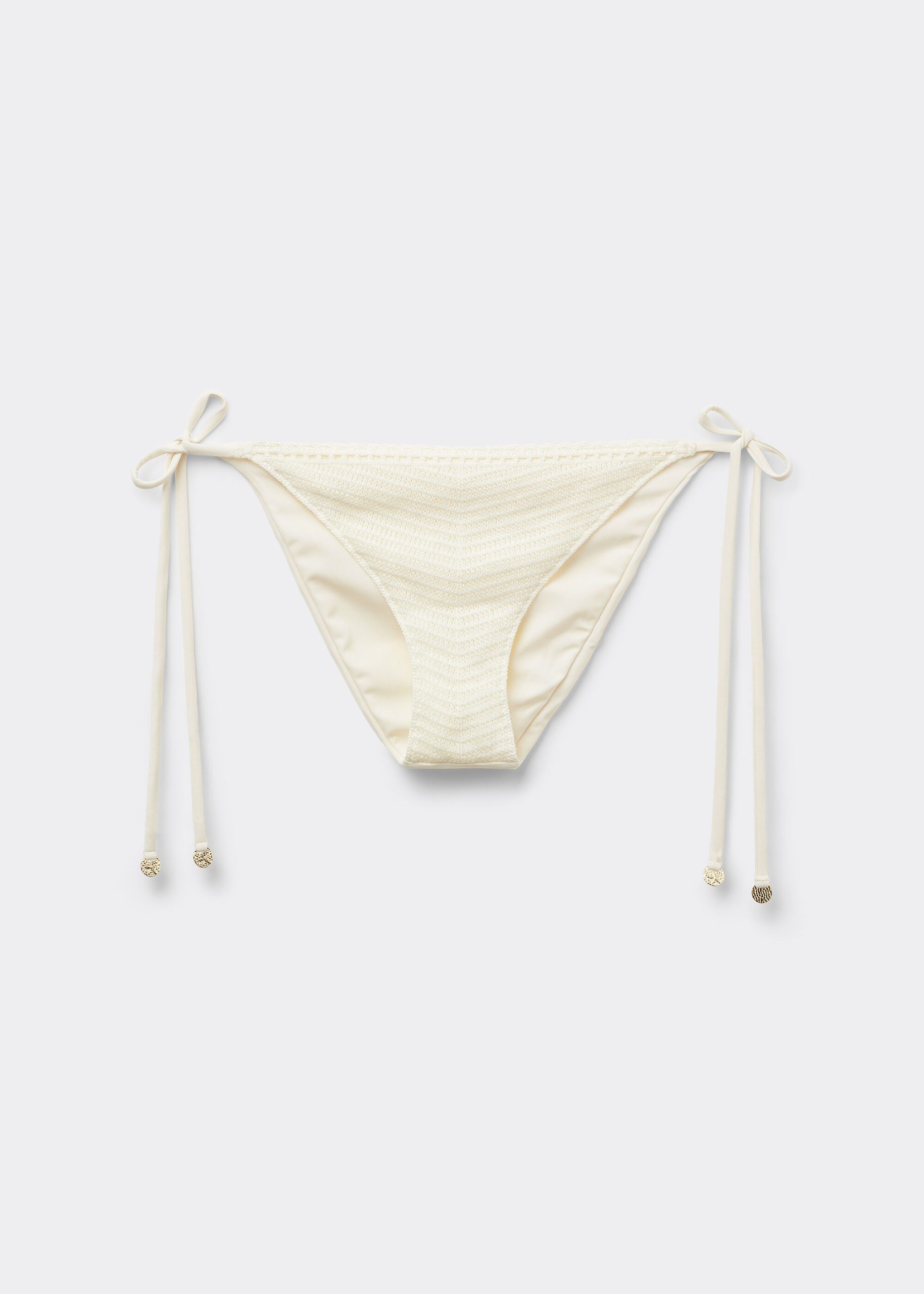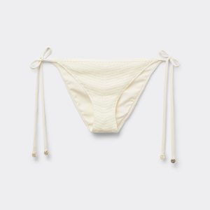 Bikini bottoms with side ties made from refined and sophisticated crochet fabric. The slightly rounded waist at the front allows for both a classic or more high-cut fit, depending on one’s physique. Fully lined with invisible seams.