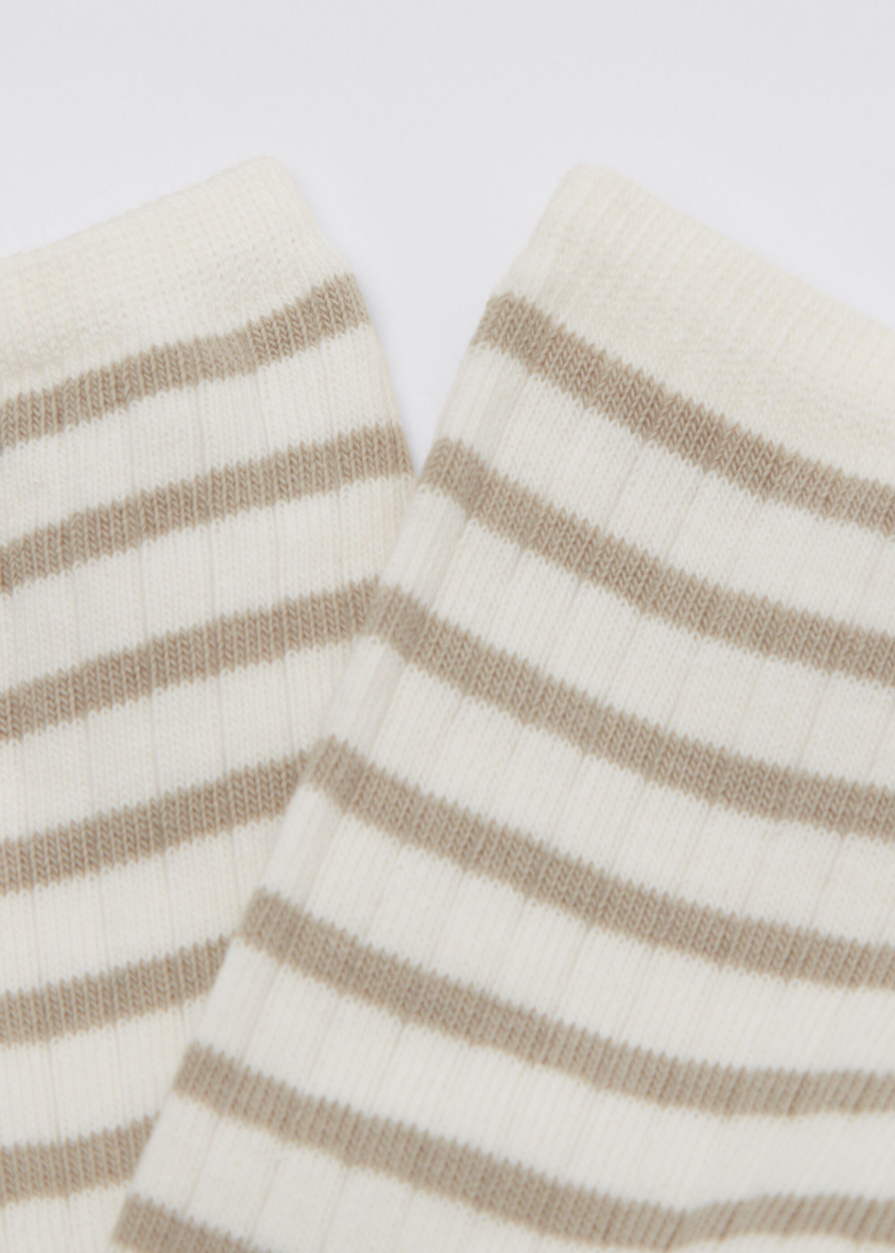 Women’s short socks in ribbed soft cotton, they offer style and comfort. The striped pattern adds a classic and versatile touch. Ideal for those looking for quality and a timeless look.