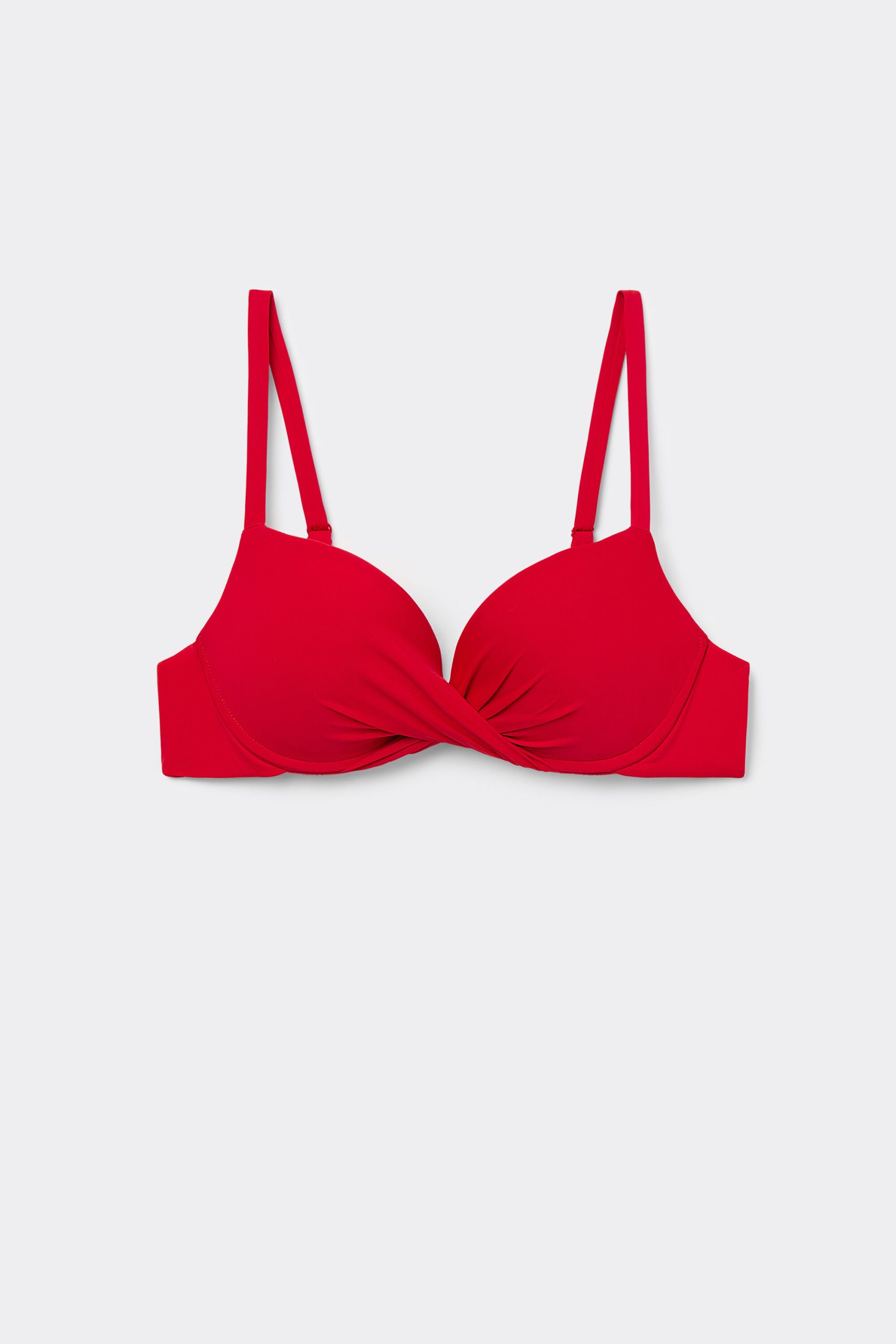 Achieve a stunning silhouette with our lifting bikini top, designed for ultimate enhancement and support. This ultra push bikini top features subtle, graduated padding and underwire to create a flattering one-size-larger effect that beautifully shapes and defines the bust. The crisscross detail accentuates the low neckline and perfectly highlights your collarbones, adding a touch of elegance to the design. Made from incredibly soft fabric, this top offers a lightweight, comfortable feel for all-day wear. For a customized fit, the adjustable push-up bikini includes removable straps that can be crossed at the back or tied behind the neck to suit your preference. The hook-and-eye back closure with an adjustable band ensures a secure and tailored fit, that is comfortable to wear and easy to put on. Whether lounging poolside or enjoying a seaside getaway, this ultra lifting bikini top blends functionality with style, making it a must-have for women seeking both comfort and a sculpted look.