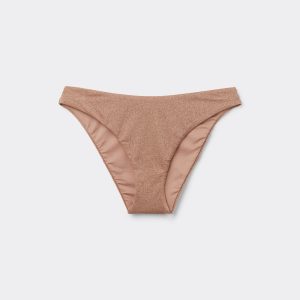 Fully lined bikini bottoms. The slightly rounded waist at the front allows for both a classic or more high-cut fit, depending on one’s physique. Soft fabric with shiny lamé thread.