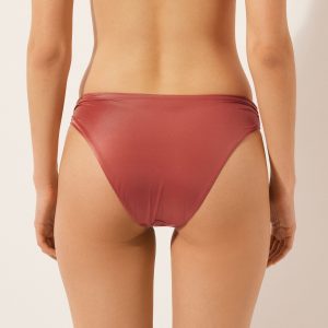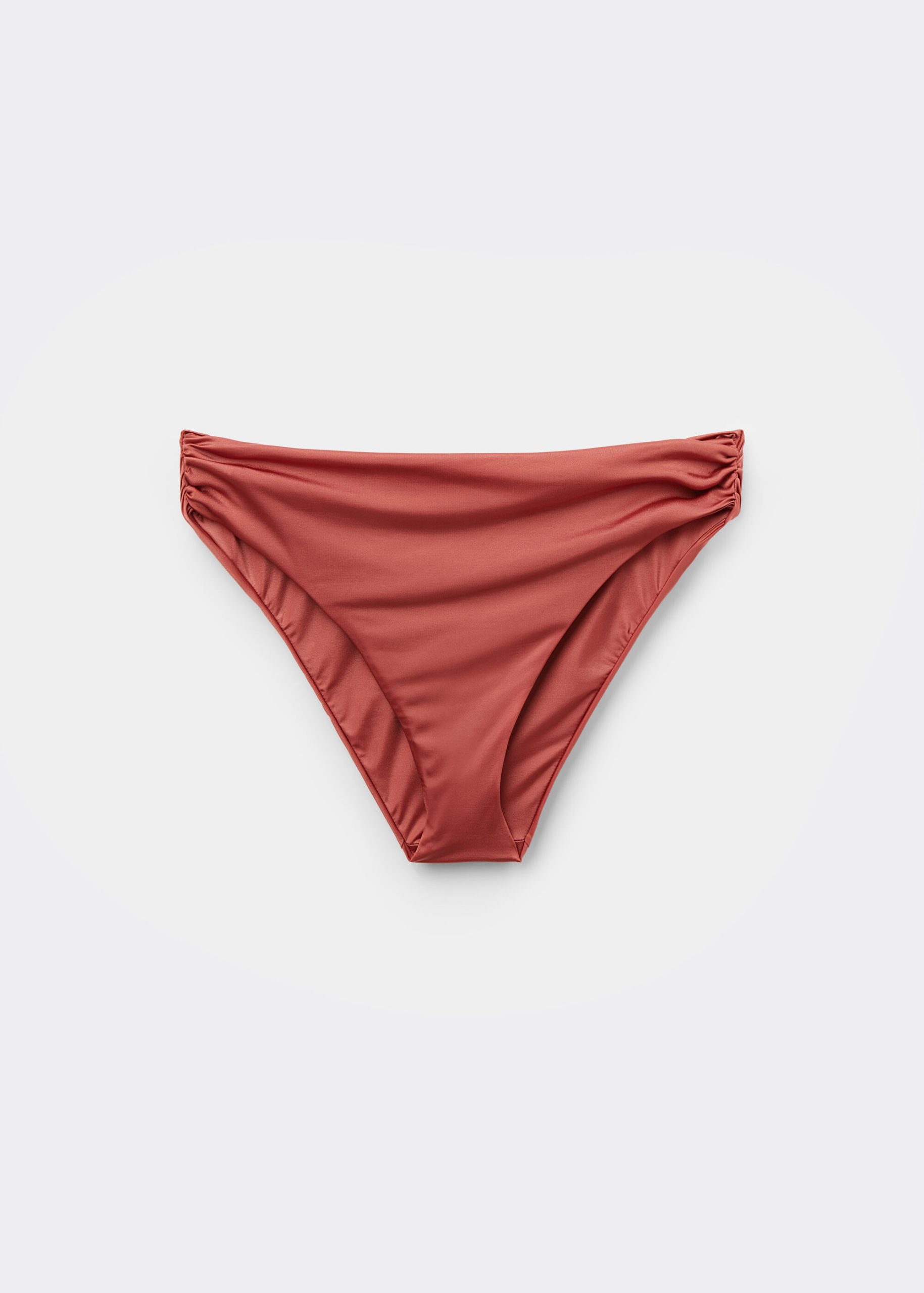 Fully lined bikini bottoms with invisible seams. The style features a bright fabric with a silky effect. The slightly rounded waist at the front allows for both a classic or more high-cut fit, depending on one’s physique.