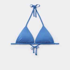 Slide triangle bikini top with removable padding, wireless for a natural effect. The extremely soft fabric makes it pleasant to wear, offering a light and comfortable feel on the skin. The shoulder straps have eyelets on the ends so they can be hooked onto the back band or tied behind the neck. Back string tie closure.