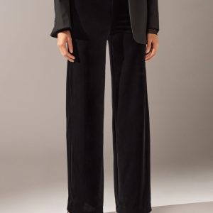 Women’s velvet palazzo pants, a perfect balance between comfort and style. This palazzo pant design features an especially soft and elegant fabric while the waistband with elastic only in the back ensures a comfortable and refined fit.